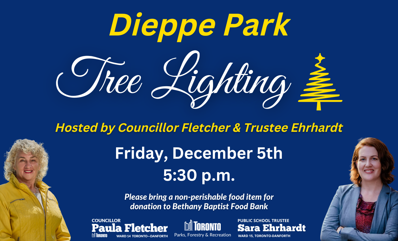 Trustee Ehrhardt and I look forward to seeing you at Dieppe Park to kick off the holiday season in East York!