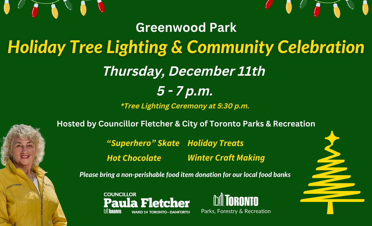 Join me and City of Toronto Parks & Recreation on Thursday, December 11th to celebrate the holidays and kick off the winter season at Greenwood Park!